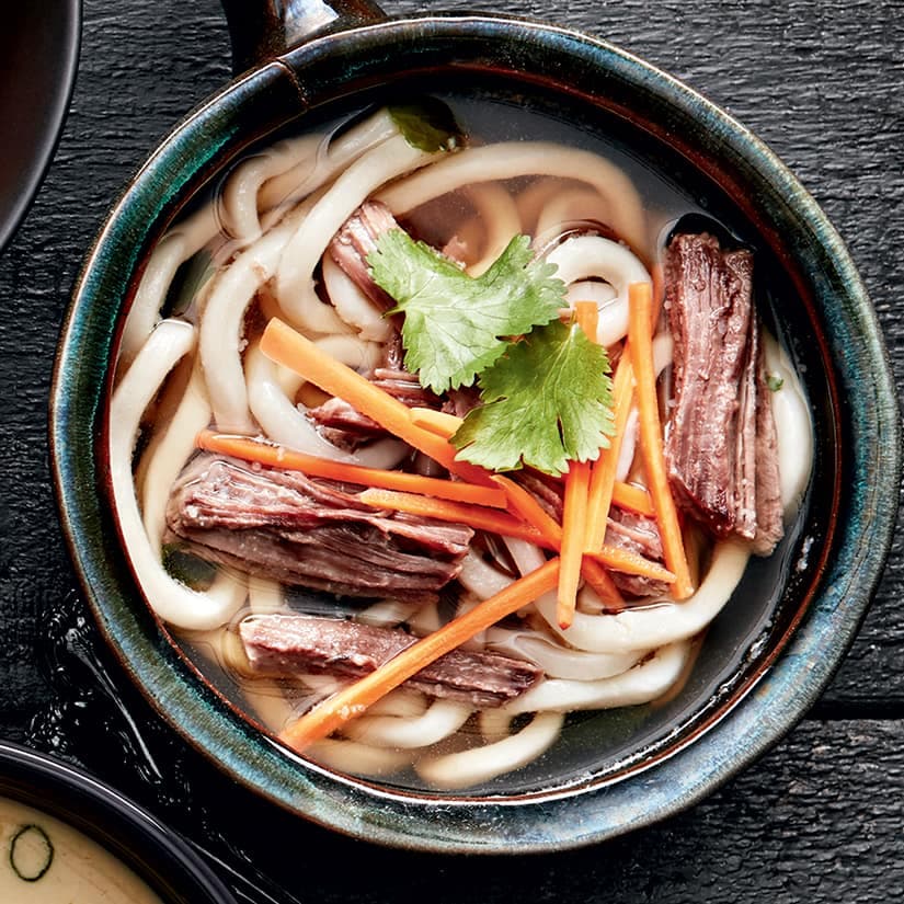 - Dans la mijoteuse, ajouter les nouilles et les carottes. Couvrir et poursuivre la cuisson à intensité élevée pendant 15 minutes ou jusqu'à ce que les carottes soient tendres mais encore légèrement croquantes. Ajouter le boeuf effiloché, la sauce de poisson, le jus de lime et la moitié de la coriandre, et remuer délicatement. (La soupe se conservera jusqu'à 2 jours au réfrigérateur ou jusqu'à 1 mois au congélateur.) Servir la soupe parsemée du reste de la coriandre.