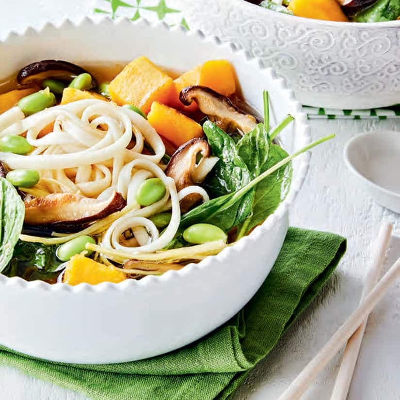 - On remplace les nouilles de blé par des nouilles de riz et on omet le beurre.