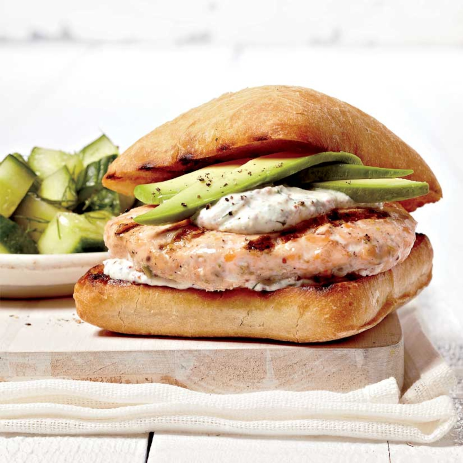 Hamburgers au fromage et aux poivrons grillés, mayo maison au thym
