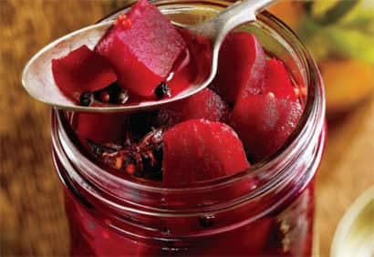 - Dans quatre pots en verre chauds stérilisés d'une capacité de 2 t (500 ml) chacun, mettre 1 c. à thé (5 ml) de graines de moutarde, 1 anis étoilé, 1 clou de girofle, 1/2 c. à thé (2 ml) de grains de poivre et 1/2 c. à thé (2 ml) de graines de coriandre. Répartir les betteraves réservées dans les pots jusqu'à 3/4 po (2 cm) du bord (au besoin, les tasser légèrement). À l'aide d'un entonnoir, verser le mélange de vinaigre chaud sur les betteraves jusqu'à 1/2 po (1 cm) du bord.