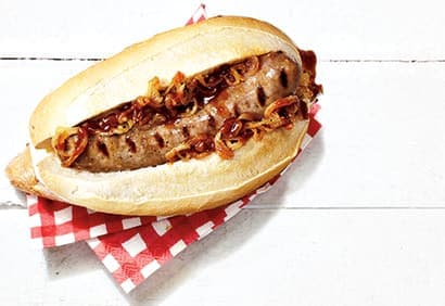 - Au moment de servir, garnir les hot-dogs des oignons caramélisés, arroser de la sauce au ketchup et parsemer des flocons de bonito et du nori.