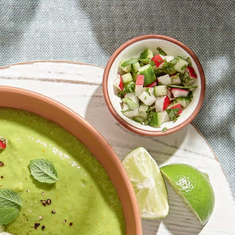 - Dans un bol, mélanger le concombre, les radis, l'huile d'avocat, la coriandre, la menthe, le zeste et le jus de lime. Incorporer la sauce tabasco, si désiré. Saler et poivrer. (La salsa se conservera jusqu'au lendemain au réfrigérateur.)