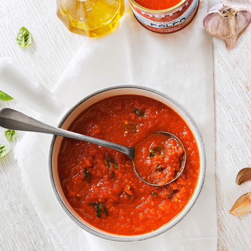 Avec cette sauce, pas besoin de garnitures sur notre pizza: un peu de fromage râpé suffira!