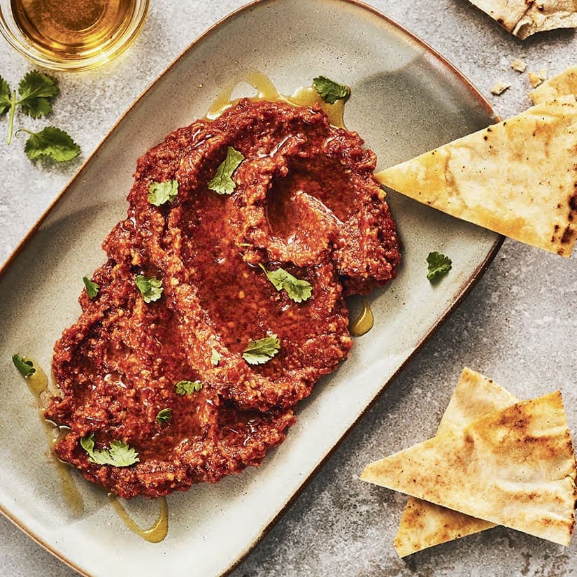 - Servir arrosé d'un filet d'huile d'olive et avec un peu de coriandre fraîche. Déguster avec des quartiers de pita grillé (ou des croustilles de maïs).