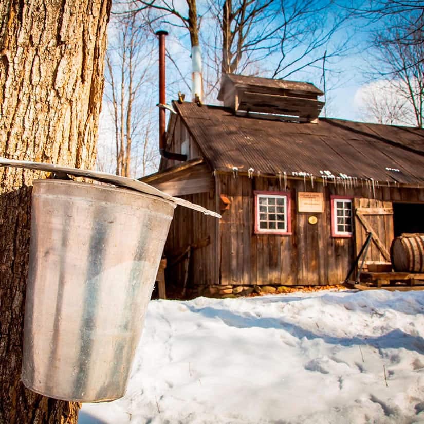 La Sucrerie de la montagne offre une expérience de cabane totalement traditionnelle: décor d’antan, récolte de l’eau d’érable à la chaudière, évaporateur au feu de bois, repas classique incluant «fèves au lard du chantier» et «ragoût de boulettes»... Mais ce qui la distingue, c’est qu’on peut y passer la nuit dans des maisonnettes (dignes d’un roman du terroir!), directement sur le mont Rigaud.