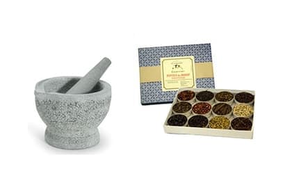 2. Pour le papa qui aime les saveurs et les épices. Avec ce mortier et un assortiment de poivres du monde (poivre Sechuan rouge et vert, de Tasmanie, du Sri Lanka, etc.), il pourra assaisonner tous ses plats à son goût.
