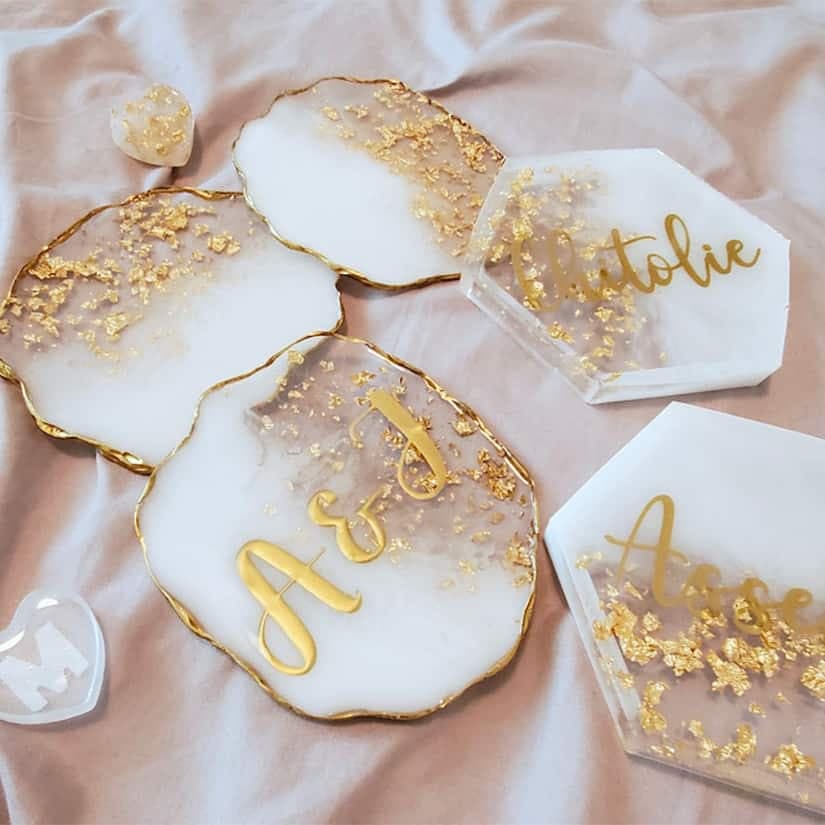 Fait en résine à effet marbré avec détails dorés. Plusieurs choix de formes.
