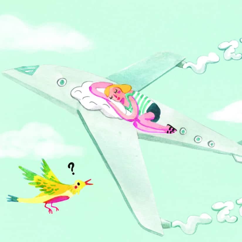 1. On porte des vêtements confortables, on se couvre d’un châle ou d’une couverture, et on plie l’oreiller sous nos genoux pour soulever nos jambes. On attache la ceinture par-dessus la couverture pour ne pas être réveillée par l’agent de bord en cas de turbulences.