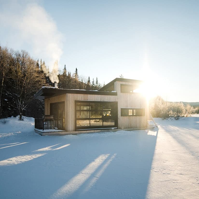 À une demi-heure de Québec, les minimaisons de Bora Boréal proposent des séjours de glamping apaisant sur un petit lac entouré de montagnes.