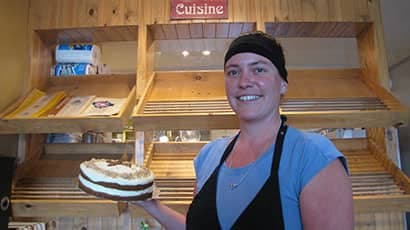 Au menu : Desserts, viennoiseries, pain. Des repas sont aussi servis le midi : gratin au poulet, lasagne ou saumon teriyaki. Et bien sûr, on peut simplement y prendre un café. Saveurs et gourmandises, 39 rue Main, North Hatley, (819) 842-3131. Ce tuyau bouffe a été écrit à la suite d’une invitation de Tourisme Cantons de l’Est . Pour découvrir d’autres tuyaux bouffe de Katerine-Lune Rollet, visitez son blogue  katerinerollet.com  ou suivez-la sur Twitter @katerinerollet .