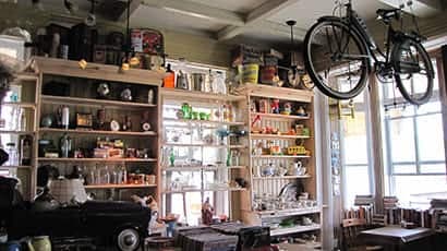 Tuyau bouffe : prendre un café entouré d’antiquités au Magasin général des Cantons. Le couple propriétaire est passionné de brocante. Lui, designer graphique et elle, professeur d’arts plastiques, sont des collectionneurs depuis toujours. Coup de foudre, il y a sept ans pour ce magasin général, ouvert en 1875, mais qui a été laissé à l’abandon pendant plusieurs années. « Les gens entrent ici et ils sont émus (NDRL : moi y compris!) Ils nous disent combien c’est unique ou combien cela leur rappelle leur enfance » confie Michel Pilon. Si l’on peut y acheter un banc d’église, une marionnette Bobinette ou un ancien moulin à café, il ne faut pas oublier de goûter à l’un de leurs produits maison : confiture fraises-rhubarbe, gelée pommes et limettes, et surtout leur caramel de beurre de pommes.