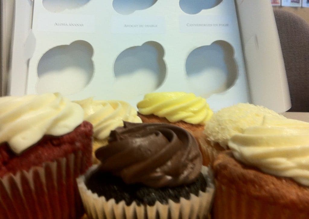 C'est un classique à Coup de pouce. Quand on a un creux, on peut toujours aller minauder du côté de la cuisine pour voir si notre responsable cuisine - Louise Faucher - n'a pas un petit quelque chose à nous faire goûter. La semaine dernière, j'ai fait preuve d'un flair exceptionnel en me pointant dans ses quartiers quelques minutes après un arrivage de petits gâteaux. Gracieuseté de la pâtisserie Baking Sweet, située à Pierrefonds (Montréal), ces cupcakes méritent bien une petite mention. D'abord, ils sont bons... comme des gâteaux maison et puis, ils viennent sans trop de fioritures. Je vous recommande d'ailleurs la dame de coeur, un red velvet, ou encore l'avocat du diable.