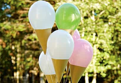 On organise une fête dans le jardin? Pour ajouter un peu de déco, on vous propose ce bricolage de ballons en forme de cônes glacés, hyper simple à réaliser.