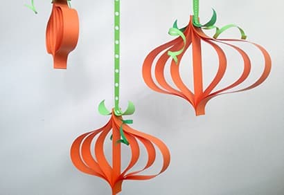 Il ne vous reste plus qu’à placer un joli ruban décoratif au sommet afin de suspendre vos citrouilles de papier! Retour au dossier Halloween