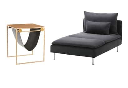 En bois et acier avec coussins en fibre de polyester et polypropylène garnis de mousse en polyuréthanne, de 93 cm x 151 cm x 83 cm (350$, chez Ikea).