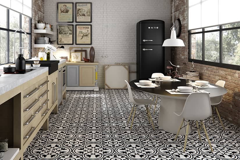 Les tuiles d’inspiration espagnole et les carreaux marocains apportent, avec leurs motifs opulents et leurs couleurs intenses, un air d’ailleurs. Jouées en un motif répété ou en patchwork, ces tuiles constituent un bon choix pour rafraîchir la déco de la salle de bains ou d’une petite salle d’eau. On peut également les utiliser pour délimiter une zone, par exemple faire ressortir l’espace cuisine dans une aire ouverte.