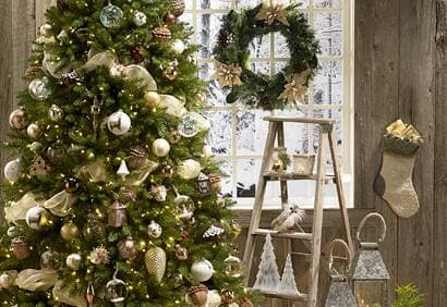 Décor traditionnel, le style chalet est au goût du jour. Pour le créer, on recherche le charme classique d’ornements qui évoquent nos Noëls d’antan.