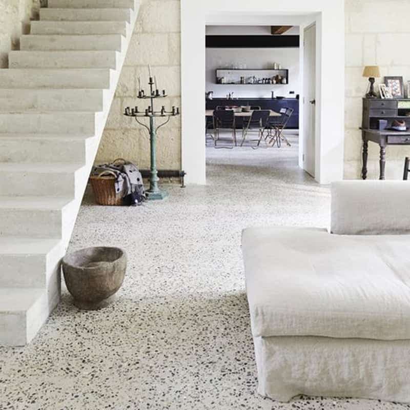 Une grande aire ouverte gagne en caractère une fois habillée de terrazzo.