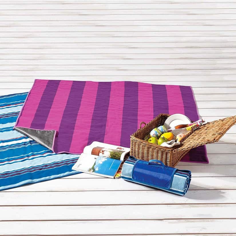 Couverture colorée en polyester pour le pique-nique. Offerte en deux couleurs. 53 po x 53 po.