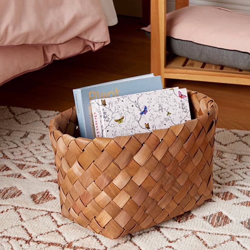 Idéal pour cacher les livres, les jouets ou les jetés du salon, ce panier en bois ajoute une touche de chaleur au décor qui fait écho à la richesse des vastes forêts nordiques. Idéal pour la salle de bain, la chambre ou le salon.