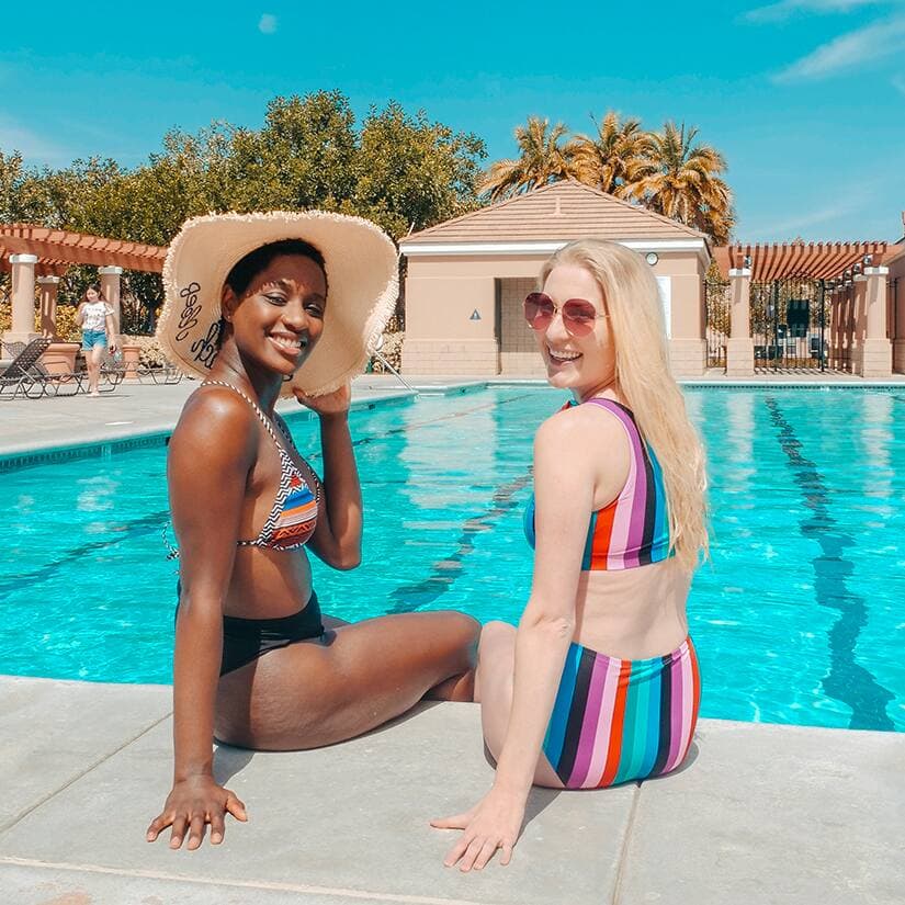 7. On fait attention avant de s’asseoir! Les surfaces rugueuses comme le béton en bordure des piscines peuvent briser les fibres de votre maillot. Utilisez votre serviette pour le protéger.