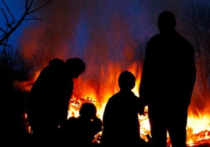 Heureusement, vous aviez changé la pile de votre avertisseur de fumée. Tiré du sommeil par le timbre sonore, vous entendez les enfants crier «Maman! Papa! Au feu!» Sans hésitation, vous leur répondez: «SORTONS!». La maison se remplit de fumée. Avec hâte, vous vous précipitez vers la porte de sortie. Vous toussez, vous avez de la difficulté à voir devant vous. À l'extérieur, votre aîné vous attend, tout inquiet. Mais, où est donc passée la cadette? Votre coeur bat à tout rompre...