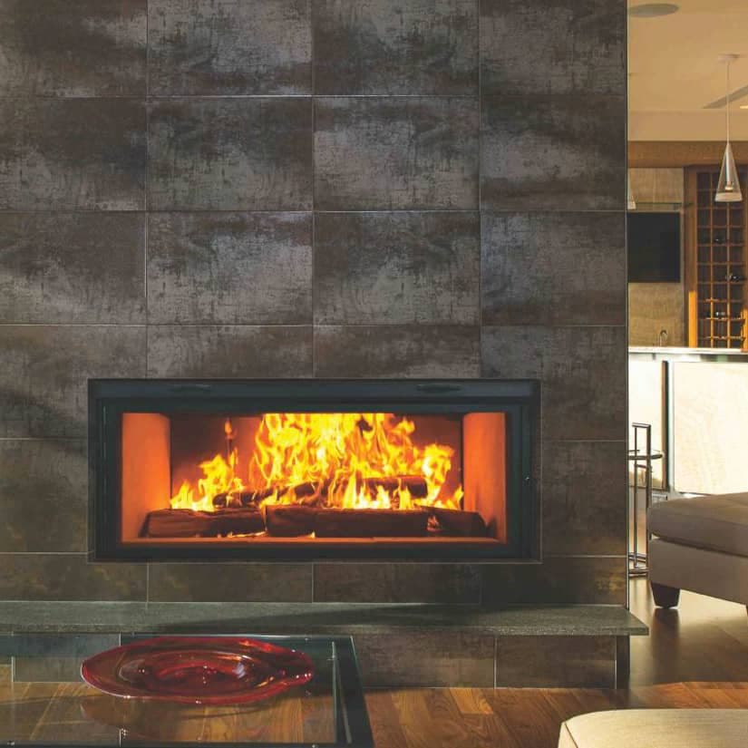 Le foyer est un caisson isolé conçu pour faire partie intégrante d’un mur. Ce dernier est fermé autour du caisson et peut recevoir un habillage de gypse, de pierre, de brique, d’acier, etc. appelé le manteau.