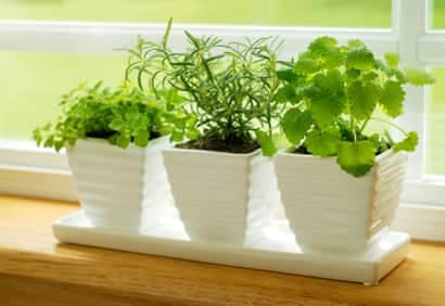 - On place les fines herbes devant une fenêtre ensoleillée toute la journée (orientation sud ou sud-est). On n'oublie pas de tourner les pots au moins une fois par semaine pour que toute la plante profite du soleil.