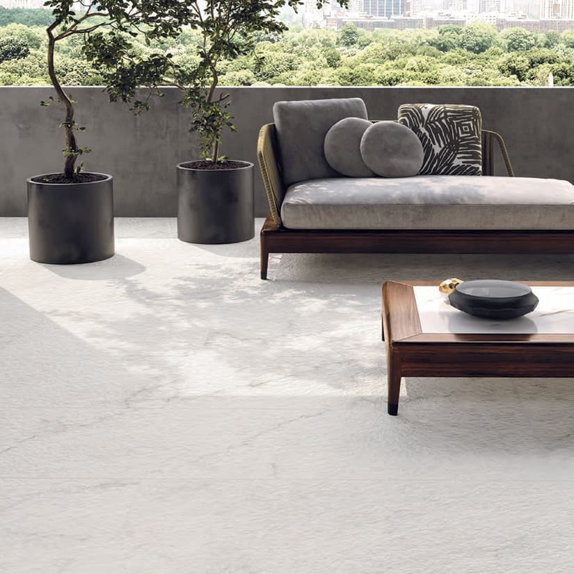 Fabriquées à partir de cette technologie, les dalles de la nouvelle collection Industria Flora (photo ci-dessus), avec motifs floraux texturés, transposent à l’extérieur la tendance aux revêtements en céramique de style méditerranéen observée en décoration intérieure ces dernières années.