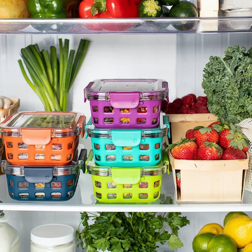 Si vous êtes dus pour remplacer vos «tupperware», optez pour des plats transparents tout comme les bacs. Le principe est simple, en rangeant vos restants ou vos crudités dans des plats transparents, vous les verrez chaque fois que vous ouvrirez la porte du frigo et vous aurez moins de chance de les oublier et de devoir les jeter. Encore mieux pour l’environnement, optez pour des plats en vitre!