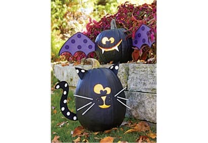 Pour reproduire ces petits rigolos, on peint les citrouilles en noir et on y colle les ailes, la queue, les oreilles, les moustaches et les crocs, découpés dans du carton.