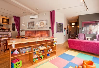Mamans et futures mamans visitent cette adresse des Laurentides (gérée par un duo mère-fille) pour casser la croûte et échanger avec d’autres mères pendant que la marmaille s’amuse dans la salle de jeu. L’espace boutique propose des accessoires d’allaitement et de maternité, ainsi que des vêtements pour enfants faits au Québec et au Canada. Chaises berçantes et coussins sont à notre disposition pour donner le sein en toute intimité. Info: 819-774-0686, cafeolait.com