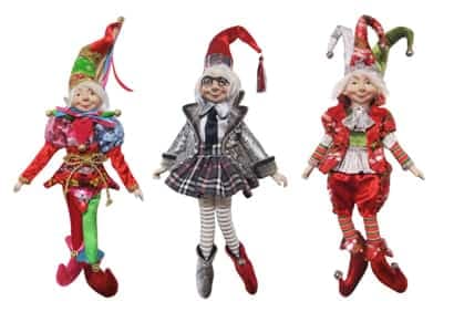 Lutins en tissu (47 cm ou 75 cm de haut). Quatre modèles disponibles (garçons et filles de différentes tailles),19,99$ les petits, 24,99$ les grands. Chez Omer DeSerres.