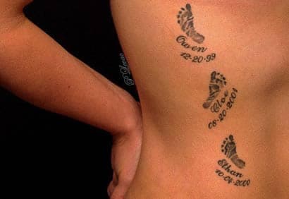 Voici une autre manière de se faire tatouer les prénoms (et les dates de naissance) de nos enfants. Avec leurs petits pieds si mignons! Pinterest: Shana Hardy