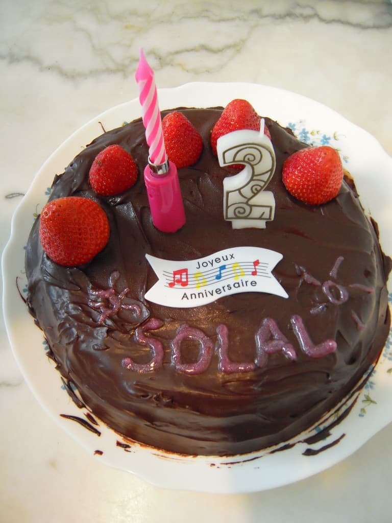 Mon fiston a fêté ses 2 ans hier. Bien sûr, j'aurais pu céder à la tentation d'acheter son gâteau d'anniversaire, prétextant un emploi du temps surchargé. J'avoue que j'y ai pensé! Mais la maman passionnée de cuisine végétalienne a eu le dessus, et c'est ainsi que j'ai réalisé ce gâteau de fête à la vanille et à la pâte d'amande nappé de chocolat noir. Quand j'ai finalement décidé de mettre la main à la pâte, la première étape a consisté - comme toujours - en une recherche sur le Web pour trouver l'inspiration. Je suis, bien sûr, passée par Pinterest, où j'ai découvert quelques tableaux alléchants. Mais c'est sur le blogue Enfant végé, que tient une Française, mère de deux enfants qui vit en Allemagne, que j'ai arrêté mon choix sur cette recette. J'y ai bien sûr apporté quelques modifications. Je vous livre ma version, qui a plu aux petits comme aux grands.