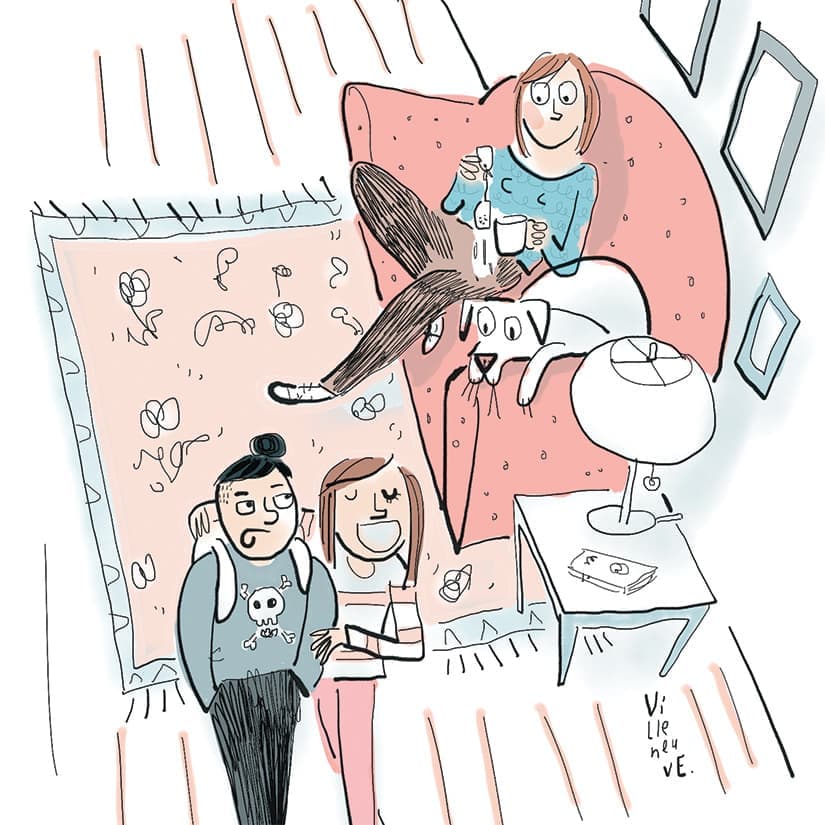 Ma fille et moi avons discuté de sa meilleure amie. Je lui ai fait part de mes inquiétudes, et nous avons convenu qu’elle pouvait continuer de l’inviter à la maison, mais qu’elle n’irait plus chez elle. (Un moyen pour moi de garder un œil discret sur leurs échanges et d’intervenir, au besoin.) Un bon compromis, selon la psychologue.