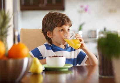 On peut offrir du jus 100% pur aux enfants dès l'âge de 7 mois, mais seulement de 60 à 90 ml par jour, et ce jusqu'à 2 ans. Ensuite, on recommande 125 ml quotidiennement maximum. Même un adulte devrait se limiter à cette quantité. Et on évite dans la mesure du possible de le boire à la paille, puisque cela favorise la carie dentaire.