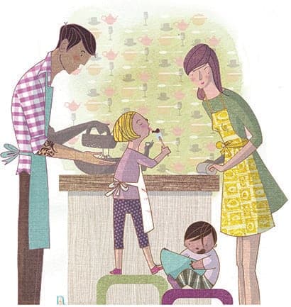Cela dit, même si les modes de transmission des connaissances se sont multipliés, rien ne remplacera l'exemple des parents. Parce qu'un enfant apprend beaucoup par observation. Parce qu'un parent qui partage avec son enfant ce qu'il sait, qui s'amuse avec lui à brasser des ingrédients et à faire cuire des plats, c'est très stimulant. Qui plus est, un enfant qui cuisine régulièrement avec ses parents est plus susceptible d'aimer cuisiner une fois adulte, selon une étude de Sobeys inc. publiée au printemps 2014. S'il a participé à la préparation d'un repas, il sera aussi plus enclin à manger des aliments qu'il n'aurait pas mangés autrement. Et en adoptant de bonnes habitudes alimentaires, il voit ses risques de souffrir d'obésité et de maladies chroniques comme le diabète diminuer sensiblement. Mais plus que tout, ce temps passé à cuisiner en famille, ce sont des moments privilégiés, à haut potentiel de rigolade, de fierté et d'amour. «C'est définitivement la meilleure façon qui soit d'enregistrer et de préserver ces connaissances», conclut Olivier Riopel.