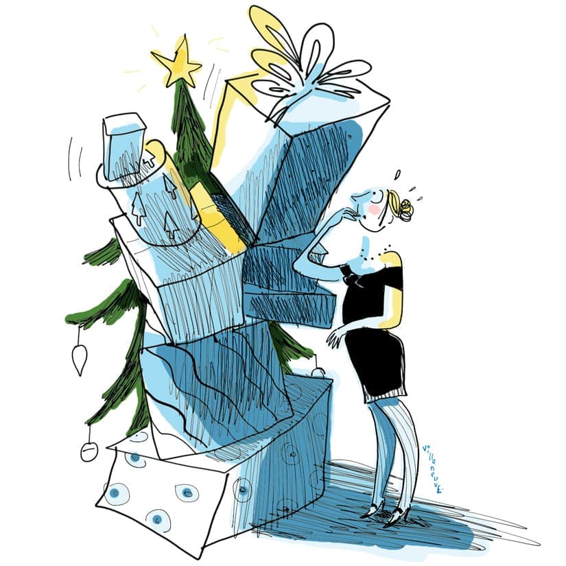 Malgré mon désir de simplicité, la période des fêtes et sa surconsommation éhontée sont entrées chez moi comme un ouragan. La scène dont j’étais témoin me frappait. Je ne voulais pas de tous ces présents, ni de cette exaltation, et encore moins de cette attitude d’enfants gâtés oscillant entre l’explosion de joie et la crise monumentale. Sofia a vécu à peu près la même chose lorsqu’elle a souligné, en même temps, les anniversaires de son garçon de quatre ans et de sa fille de deux ans. Une mauvaise idée. «J’ai dû cacher des cadeaux tellement il y en avait, dit-elle, troublée. C’était démesuré et intense. J’avais honte.»