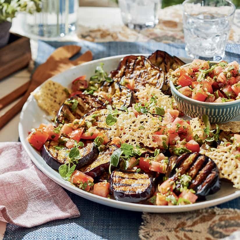 Aubergine grillée avec salsa de tomates, câpres et anchois