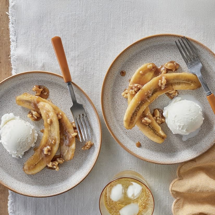 3. Servir les bananes avec le caramel, garnies d'un peu de noix, si désiré, et accompagner de crème glacée.