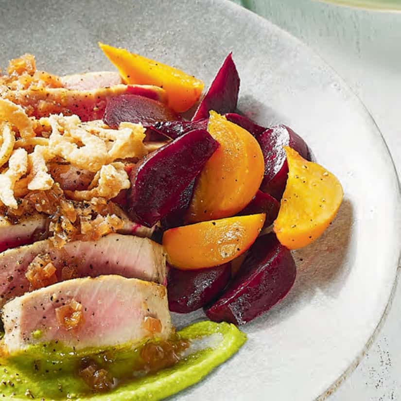 - Dans un poêlon, chauffer le beurre à feu moyen. Ajouter les betteraves et les réchauffer 2 minutes, en brassant. Ajouter le vinaigre et le miel, et poursuivre la cuisson, en brassant, 1 minute ou jusqu'à ce que les betteraves soient bien enrobées. Saler et poivrer.