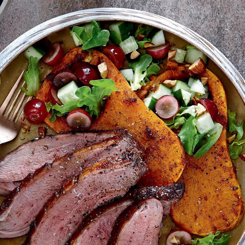 - Déposer les tranches de courge sur une plaque de cuisson tapissée de papier parchemin. Les badigeonner de l'huile épicée réservée. Saler et poivrer. Cuire au four préchauffé à 425 °F (220 °C) de 15 à 20 minutes ou jusqu'à ce que les biftecks de courge soient tendres et dorés (les retourner délicatement à mi-cuisson).