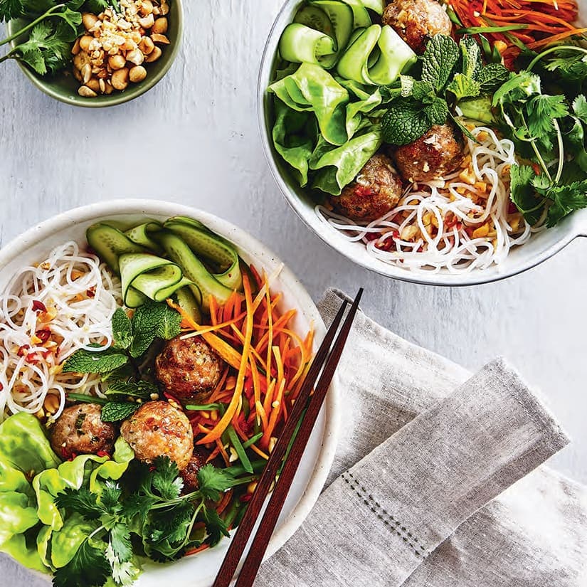 Bols de vermicelles et boulettes de porc à la citronnelle