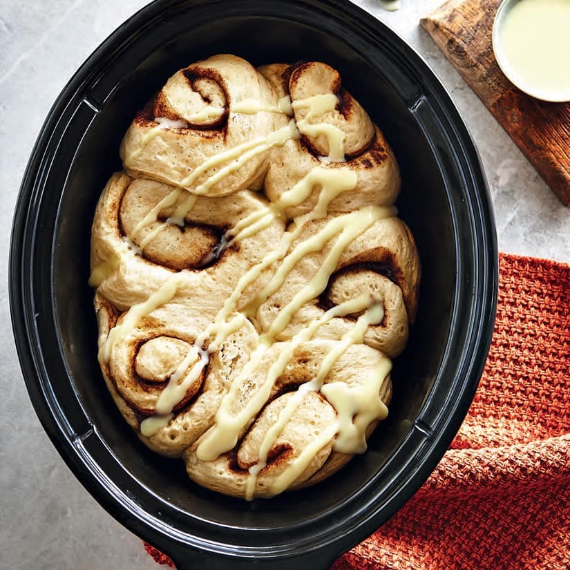 - Beurrer le fond et les parois d'une mijoteuse, puis les ta- pisser de papier parchemin. Répartir les brioches dans la mijoteuse. Couvrir le récipient de papier essuie-tout puis fermer la mijoteuse (cela empêchera l'eau formée par la condensation de tomber sur les brioches). Cuire de 1 heure 30 minutes à 1 heure 45 minutes, à intensité élevée, ou jusqu'à ce que les côtés des brioches soient dorés. Retirer les brioches de la mijoteuse à l'aide du papier parchemin et laisser tiédir. (Les brioches se conserveront jusqu'au lendemain, à la température ambiante, ou jusqu'à 1 mois au congélateur.) Servir les brioches avec la glace.