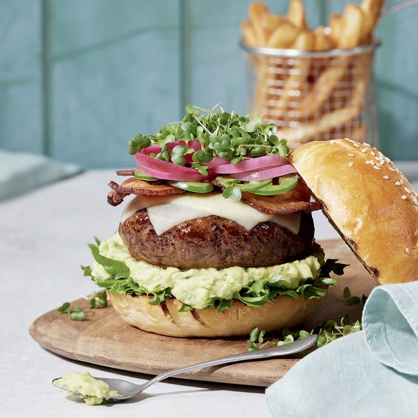 Burgers de bœuf avec bacon et avocat