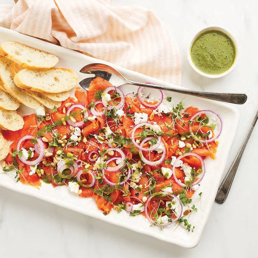 Carpaccio de saumon fumé au basilic et au citron