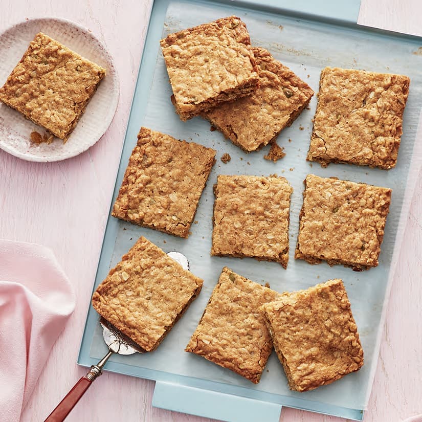 - Cuire au four de 15 à 20 minutes ou jusqu'à ce que les rebords de la pâte soient dorés et qu'un cure-dent, inséré au centre, en ressorte propre. Laisser tiédir environ 15 minutes, puis couper en carrés. Laisser refroidir au moins 15 minutes de plus avant de déguster. (Les carrés se conserveront jusqu'à 3 jours dans un contenant hermétique, à température ambiante, ou jusqu'à 3 mois au congélateur.)