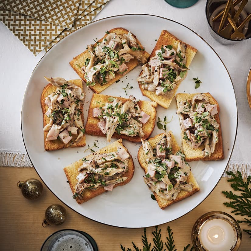 - Servir sur des tranches de pain grillé, coupées en deux. Garnir de ciboulette et de thym, si désiré.