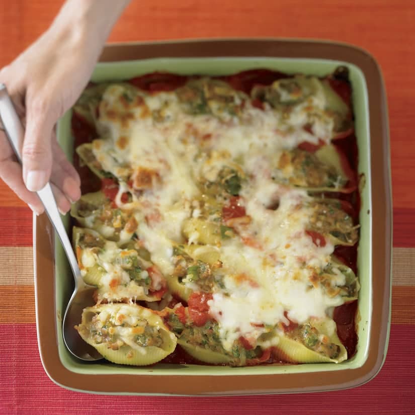 - Retirer le papier d'aluminium et poursuivre la cuisson pendant environ 10 minutes ou jusqu'à ce que le fromage soit doré. (Vous pouvez préparer les coquilles à l'avance, les laisser refroidir et les couvrir. Elles se conserveront jusqu'à 2 jours au réfrigérateur ou jusqu'à 1 mois au congélateur).